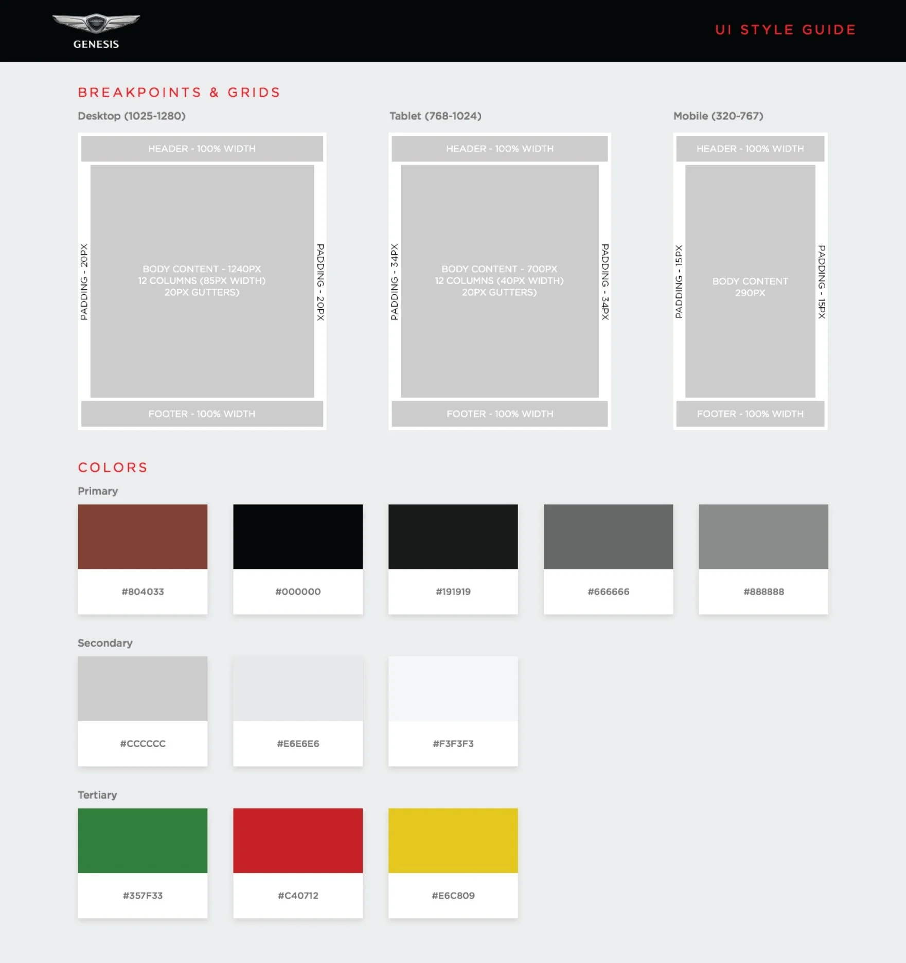 The Genesis Design System is built on the Hyundai Genesis brand guidelines, embodying a philosophy of simplicity, luxury, and minimalism to deliver a seamless and premium digital experience.