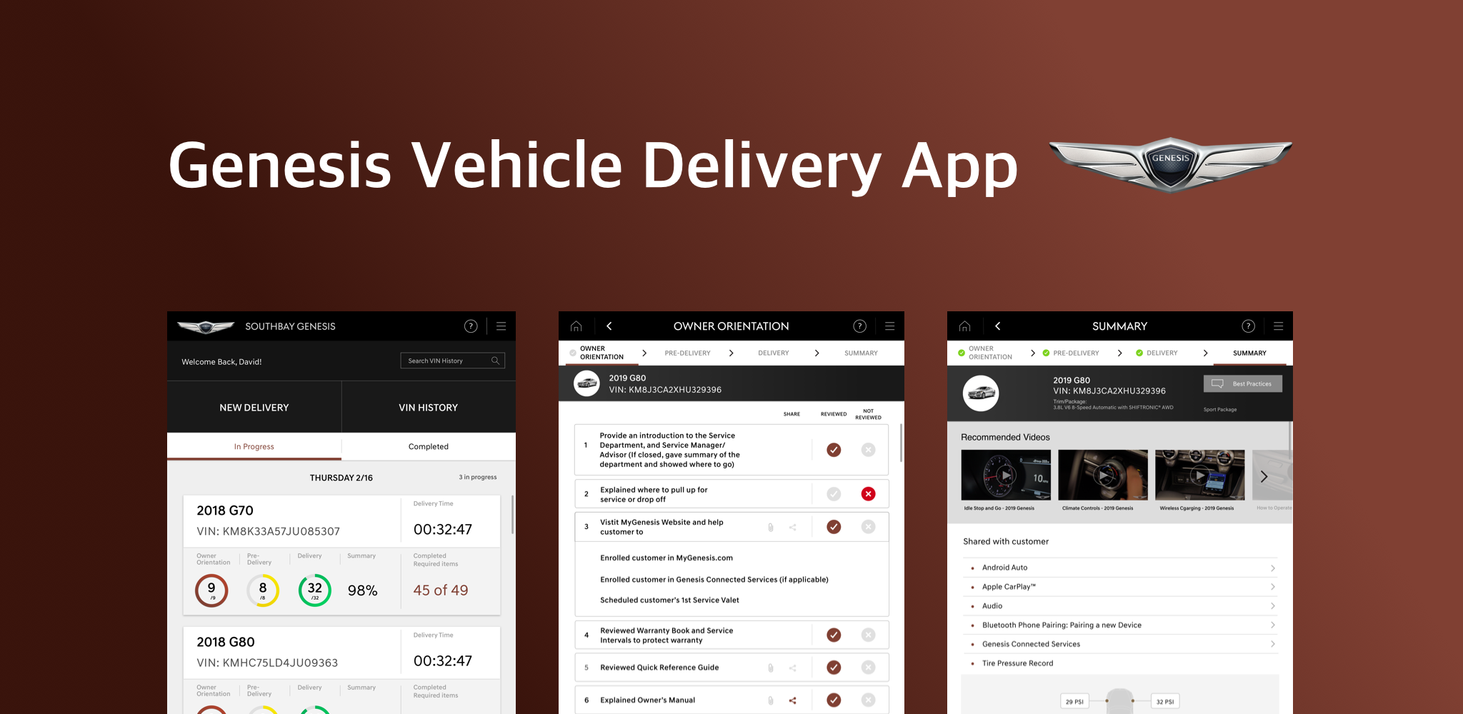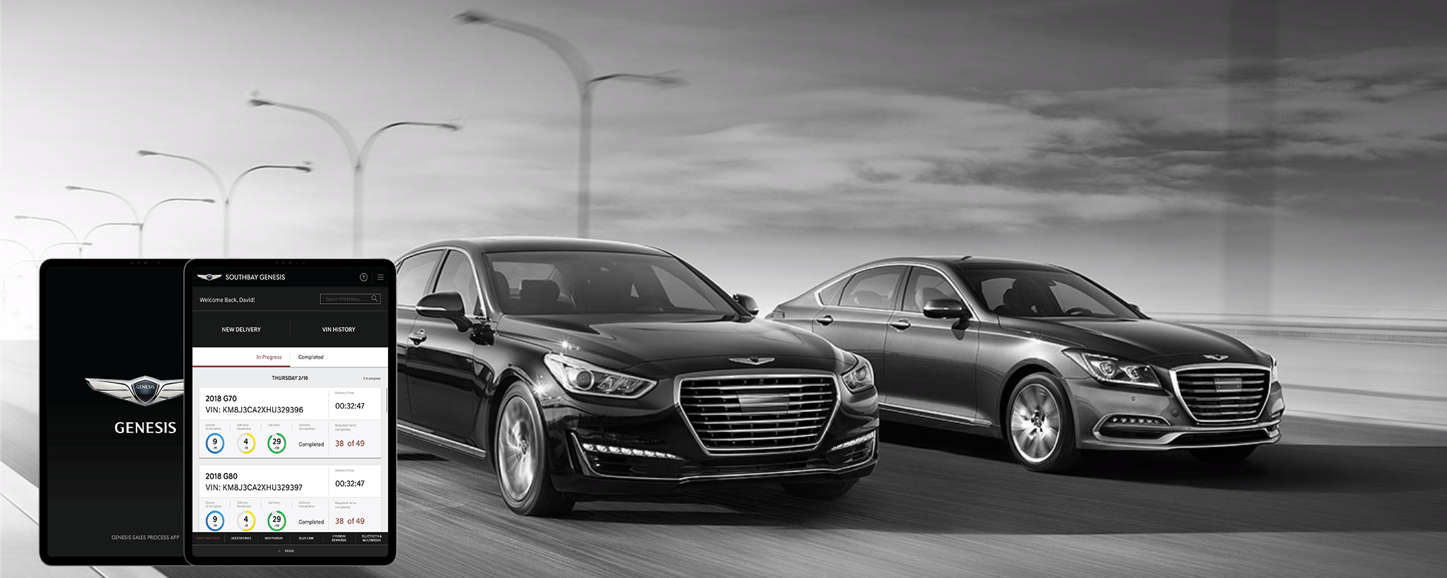 The Genesis Sales Process Application is a KPI-driven, connected vehicle platform designed for iPad and mobile devices to streamline the sales and delivery process at Genesis dealerships.